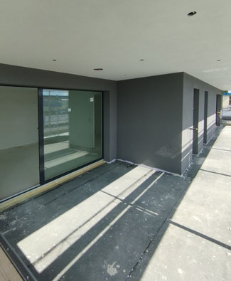Auch aussen am Haus wird noch fleissig gearbeitet. Auf den Terrassen werden als Bodenbelag Feinsteinzeugplatten auf stelzten verlegt.