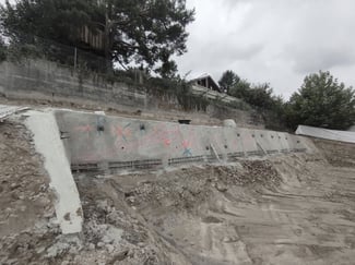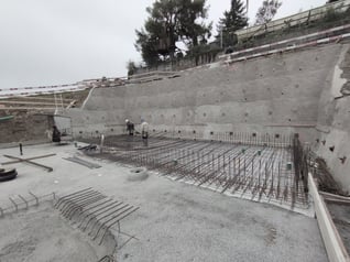 Die Aushubarbeiten beinhalten auch die Sicherstellung der Böschungen. Aufgrund der Platzverhältnisse und Tiefe der Baugrubensohle wird eine Nagelwand errichtet. Die Nagelwand wird zunächst armiert und anschliessend mit Spritzbeton aufgefüllt. Ihr Name erhält die Nagelwand durch die Nägel, welche später durch die Betonwand in den Hang gebohrt werden, damit dieser gesichert ist und nicht rutscht.