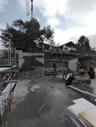 Der Baumeister errichtet aktuell die Betonwände und Brüstungen im Attikageschoss. Schon bald wird mit der Schalung für die Decke über dem Attika gestartet, womit sich der Rohbau langsam dem Ende zuneigt.