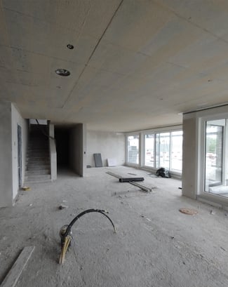Im Anschluss konnte der Anhydrit-Unterlagsboden eingegossen werden und somit wurde die Basis für den weiteren Innenausbau gelegt. Aktuell werden die Innenwände vom Gipser abgerieben.