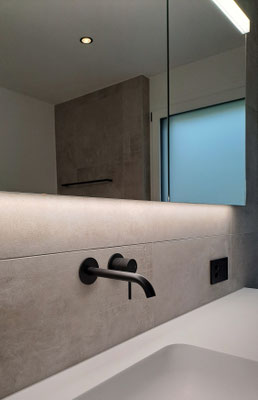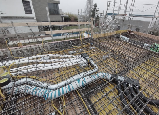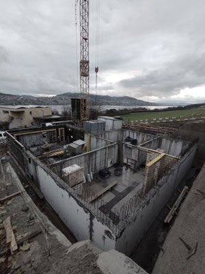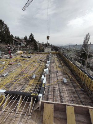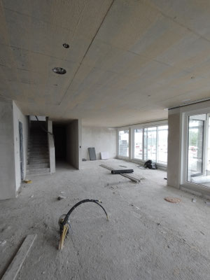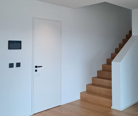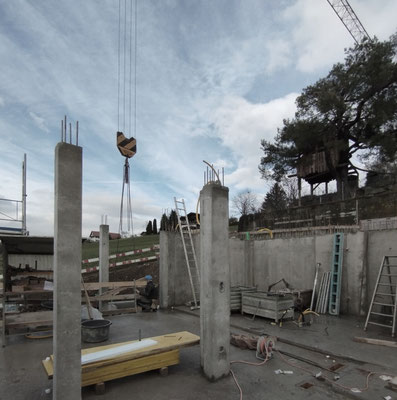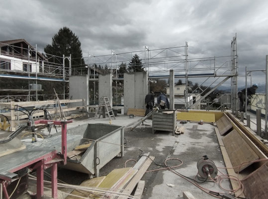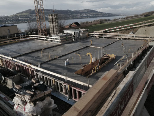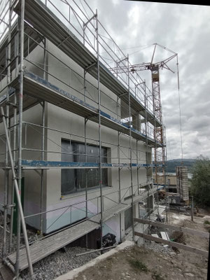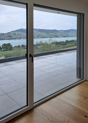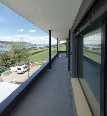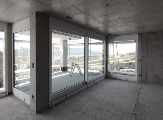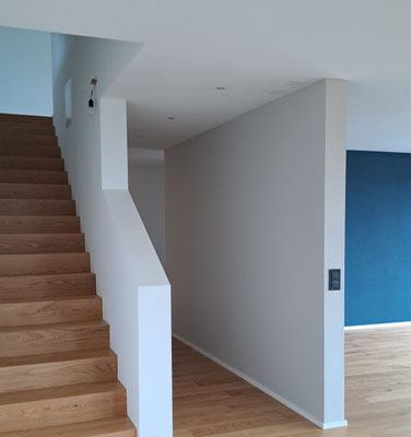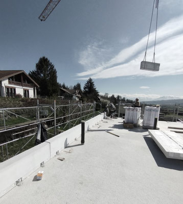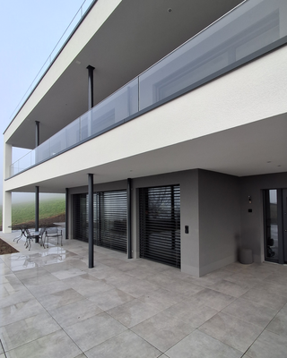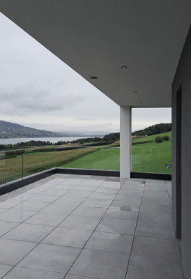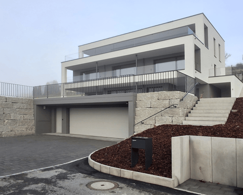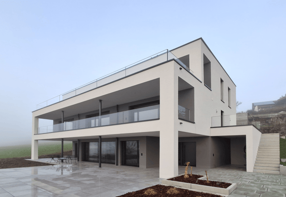 Das Einfamilienhaus in Aesch liegt in einem ruhigen Hangquartier mit bester Sicht auf den Hallwilersee. Das Untergeschoss ist in den Hang eingebettet und bietet dem darüberliegenden Wohnbereich einen ebenen Aussenbereich, um mit der Familie verweilen zu können. Die sichtbare Kubatur ist trotz Loggias und Terrassen in sich abgeschlossen. Die grossen talseitigen Fensterfronten bieten eine schöne Aussicht ins Tal. Um die Fassade leichter zu machen, wird die Kubatur durch den Einsatz einer partiellen Besenstrichstruktur unterbrochen.