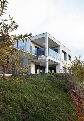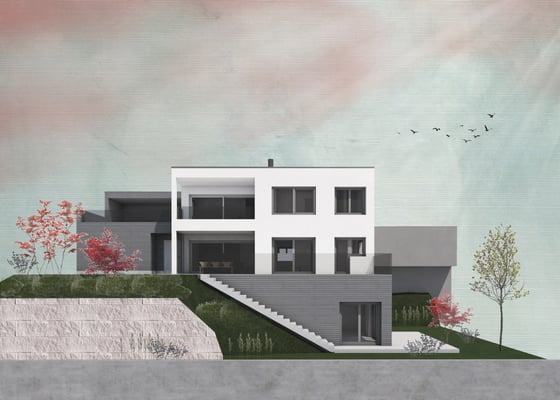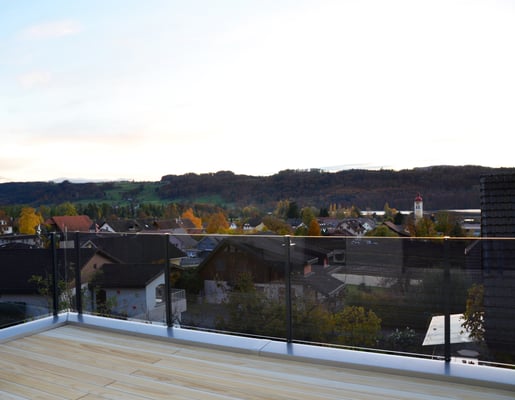 Der wundervolle Ausblick auf den Hallwilersee ist atemberaubend. Durch die gegebene Hanglage des Einfamilienhauses, konnte das Konzept Einfamilienhaus mit zwei Studios passend in seine Umgebung eingeplant werden. Das Wohnzimmer, die Küche und einige Zimmer im Obergeschoss besitzen das wunderbare Privileg der Aussicht Richtung See und Bergpanorama.