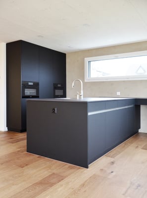 Die beiden grossen Terrassen im Erd-und Obergeschoss sind auf die Bedürfnisse und Wünsche der Bauherrschaft angepasst und mit ihrer Lage und Aussicht als Ort der Erholung konzipiert. Im Innenraum tragen viele kleine Details zur liebevollen Atmosphäre bei.