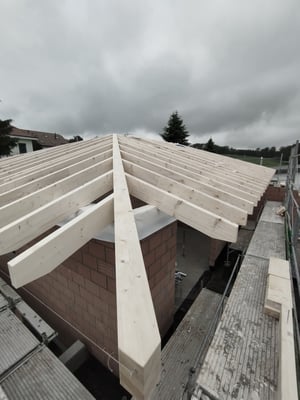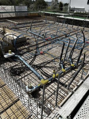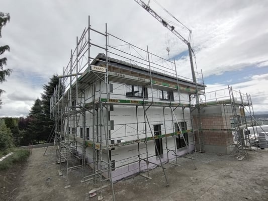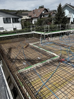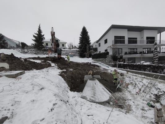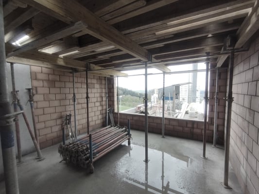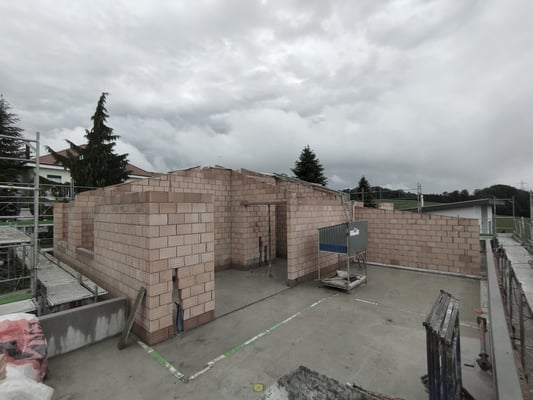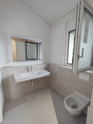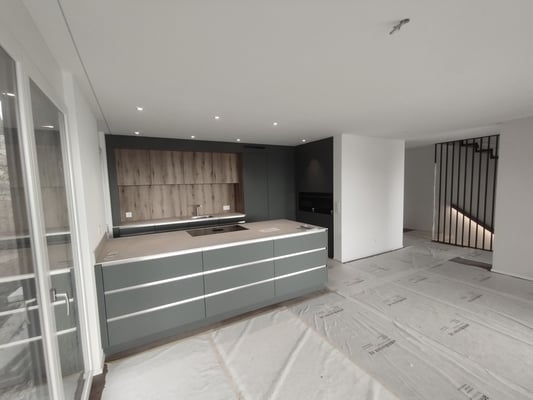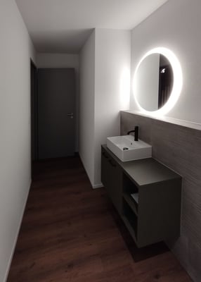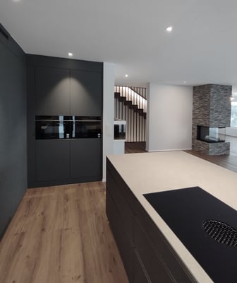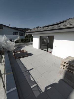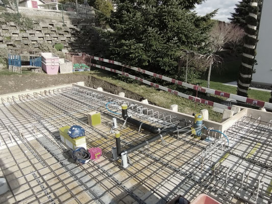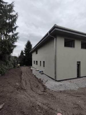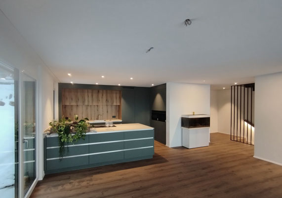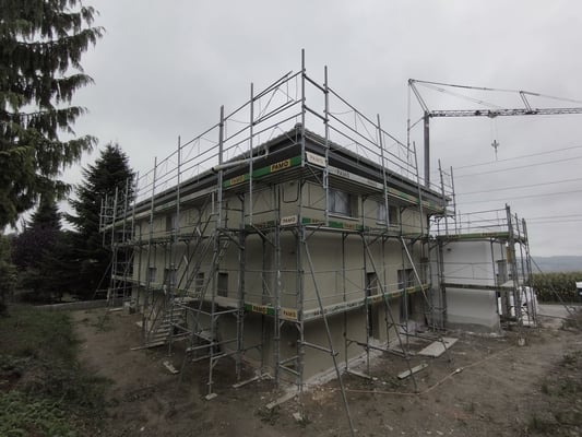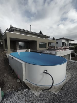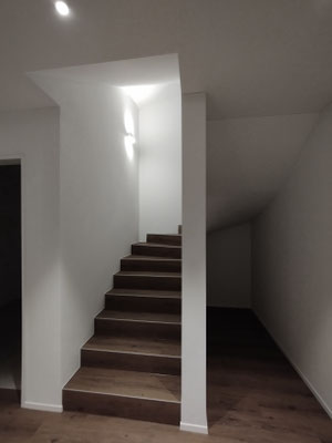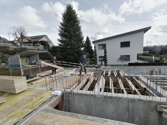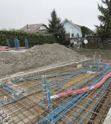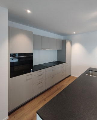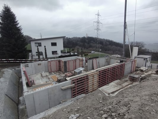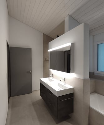 Das Gebäude besteht aus einer Haupt- und Einliegerwohnung. Die Hauptwohnung mit einer praktischen Raumaufteilung, grosser Terrasse mit Pool im Parterre und grosszügiger Garage. Die Einliegerwohnung mit separatem Eingang und Garage, erstreckt sich über drei Geschosse und verfügt ebenfalls über Terrasse und Balkon. Die einfache und klare Kubatur der Hauptbaute, wird durch die vorspringenden, farblich abgehobenen Balkonteile unterbrochen. Das Grundstück liegt unmittelbar am Dorfrand, dies ermöglicht einen umfassenden Blick durch das Panoramafenster in die Natur.
